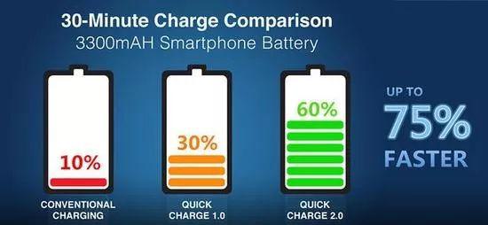 時間到推到2012年,那是手機(jī)平板等移動設(shè)備高速井噴發(fā)展的一年。手機(jī)電池容量也陸續(xù)突破2000mAh,甚至4000mAh,但智能能手機(jī)吃電還是越來越兇,手機(jī)廠商們思來想去開始正式研究快充技術(shù)。而老大哥USB IF協(xié)會當(dāng)時卻沒有給出任何一套可行的解決方案。到了2013,芯片供應(yīng)商高通志向遠(yuǎn)大,其第一個發(fā)現(xiàn)了問題,于是率先提出了“快充”的概念,Quick Charge 1.0也就此橫空出世。