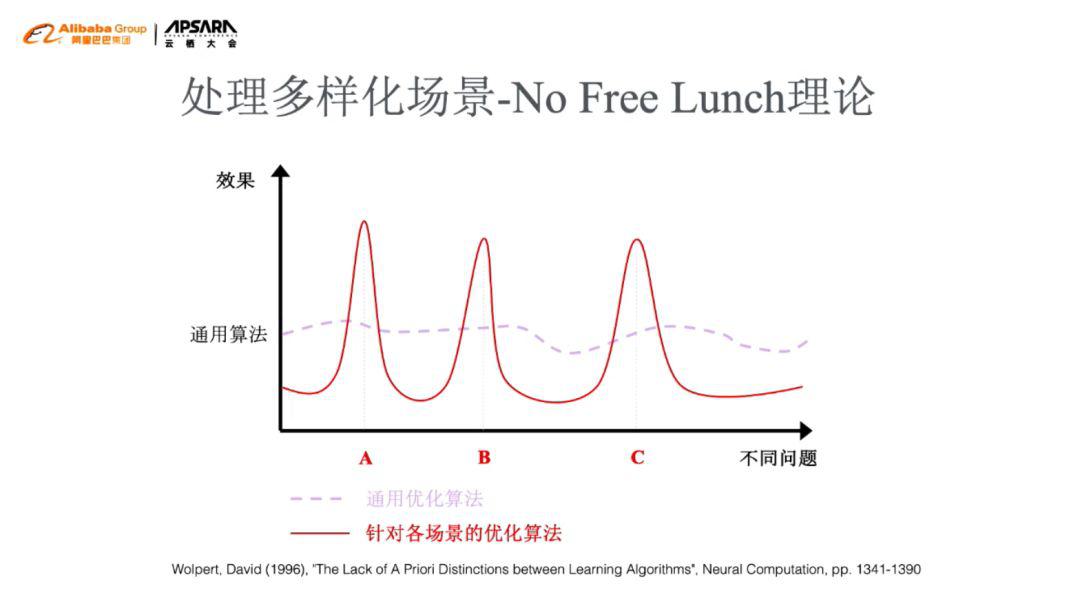 王剛表示,自動駕駛技術(shù)總體來說還是非常困難的存在。從算法角度來講,最需要解決的就是非常多樣化的交通場景。至此,王剛引出了人工智能領(lǐng)域的經(jīng)典理論——No Free Lunch理論。