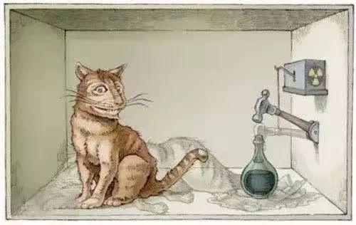 而薛定諤拿出一只貓前來迎戰(zhàn)。也就是薛定諤的貓?!拓埻幰皇业倪€有個自動化裝置,內(nèi)含一個放射性原子:如果原子核衰變,就會激發(fā)α射線->射線觸發(fā)開關(guān)->開關(guān)啟動錘子->錘子落下->打破毒藥瓶,于是貓當場斃命。