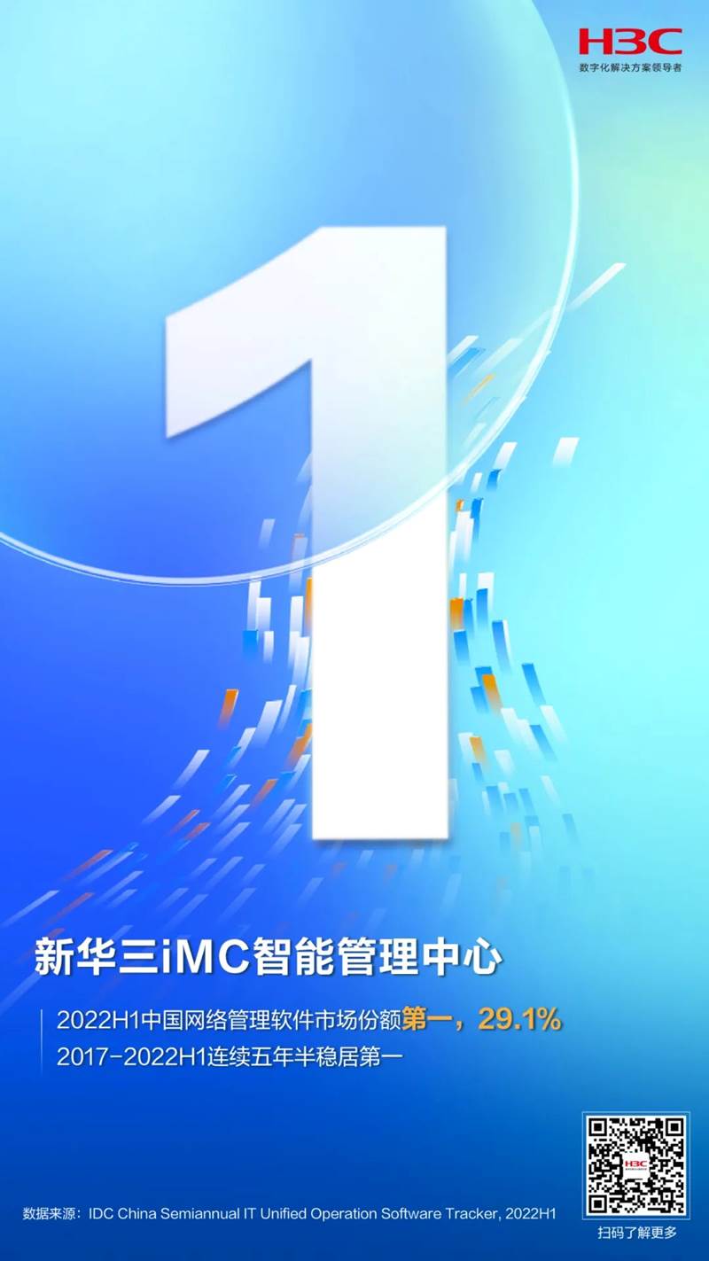 日前,國際數(shù)據(jù)公司IDC發(fā)布《中國IT統(tǒng)一運維軟件市場報告,2022H1》,報告顯示,在2022年上半年,紫光股份旗下新華三集團在網(wǎng)絡(luò)管理軟件(NMS)子市場以29.1%的市場份額穩(wěn)居第一,這是自2017年以來新華三連續(xù)五年半在這一細(xì)分市場蟬聯(lián)冠軍,充分彰顯了在網(wǎng)絡(luò)管理領(lǐng)域的絕對實力。