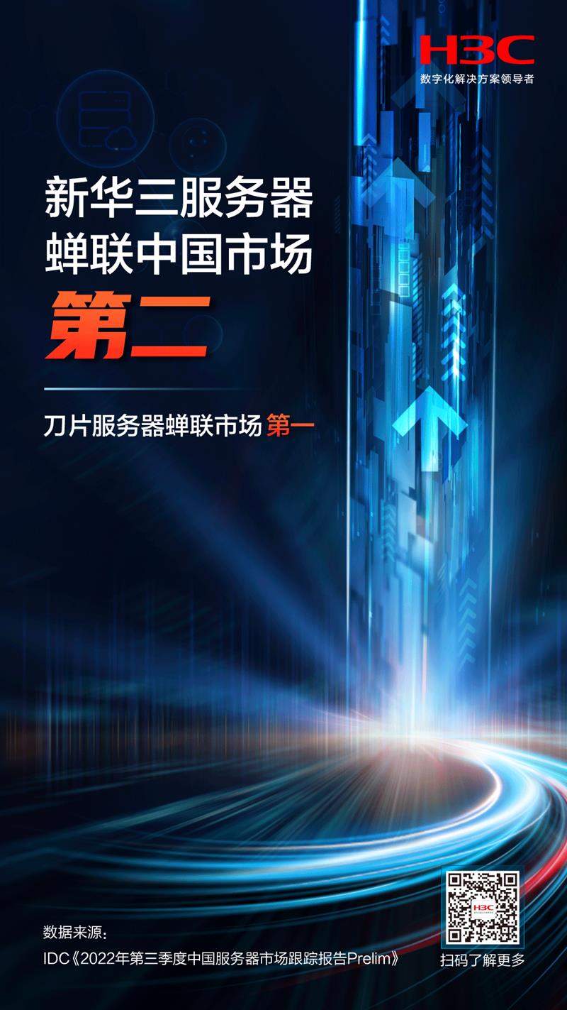 今日,IDC發(fā)布了《2022年第三季度中國服務器市場跟蹤報告Prelim》,紫光股份旗下新華三集團服務器銷售額占整體市場份額15.7%,蟬聯(lián)中國市場第二。其中,新華三刀片服務器以50.6%的市場份額連續(xù)多個季度蟬聯(lián)第一。