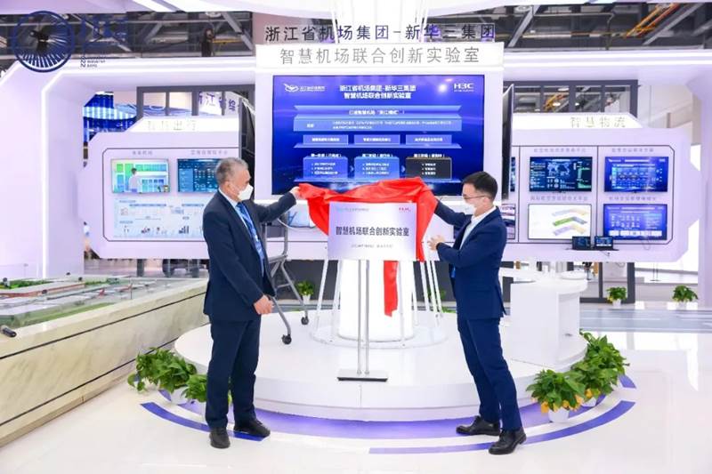 隨后,在新華三集團(tuán)與浙江機(jī)場(chǎng)集團(tuán)聯(lián)合展位,舉辦了“智慧機(jī)場(chǎng)聯(lián)合創(chuàng)新實(shí)驗(yàn)室”揭牌儀式。實(shí)驗(yàn)室將以業(yè)務(wù)目標(biāo)為驅(qū)動(dòng),以新技術(shù)新理念為引領(lǐng),打造預(yù)生產(chǎn)、測(cè)試及創(chuàng)新環(huán)境,推動(dòng)機(jī)場(chǎng)新技術(shù)與業(yè)務(wù)需求結(jié)合,孵化具備前瞻性及競(jìng)爭(zhēng)力的解決方案,形成國(guó)內(nèi)乃至國(guó)際機(jī)場(chǎng)信息技術(shù)前沿陣地,全面賦能浙江省智慧機(jī)場(chǎng)建設(shè)工作。