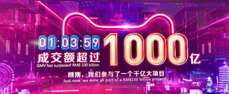 天貓自家喜報持續(xù)公布一天,成交額超過100億元人民幣僅用了96秒,比2018年少了29秒。開場僅12分49秒,銷售額突破500億元。開場1小時03分59秒,銷售額突破1000億元,比2018年快了43分鐘25秒,比2017年快了將近8小時。
