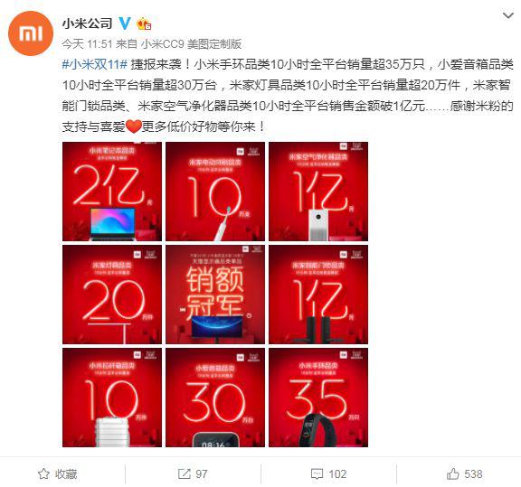 開場僅2分鐘,小米天貓官方旗艦店銷售額就破億元、4分鐘突破2億元,到25分鐘時小米天貓官方旗艦店的銷售額已經(jīng)突破5億元,而去年同期達(dá)到5億元的銷售額花了整整33分08秒。當(dāng)時間截至到1點時,小米在天貓官方旗艦店的銷售額已經(jīng)超10億元較去年同期增長21.6%,同一時間天貓平臺也宣布總成交額破1000億元,小米品牌店鋪成交金額占了天貓平臺總成交額的1%,成為品牌店鋪銷售額第一名。