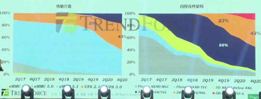 此外,隨著NAND Flash技術(shù)發(fā)展到3D NAND階段,每顆die的傳輸速度也有小幅提升,在UFS3.0或以上的產(chǎn)品內(nèi),高層數(shù)3D NAND會(huì)是更匹配的組件。因此,葉茂盛表示,3D 92/96層NAND Flash產(chǎn)品滲透率預(yù)計(jì)將在2020年大幅提升。