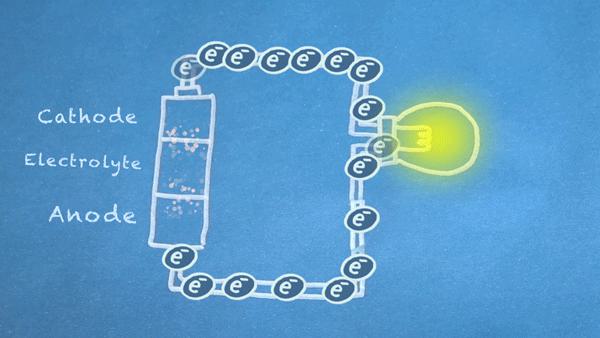 簡單來說,電池就是通過某種化學(xué)反應(yīng)能夠在電路中產(chǎn)生電流的裝置。所有電池都具有三個(gè)基本的組件:陽極、陰極和電解質(zhì)。當(dāng)電池的陽極和陰極連接到電路時(shí),陽極和電解質(zhì)之間會(huì)發(fā)生化學(xué)反應(yīng)。該反應(yīng)使電子流經(jīng)電路并返回到陰極,在陰極發(fā)生另一種化學(xué)反應(yīng)。