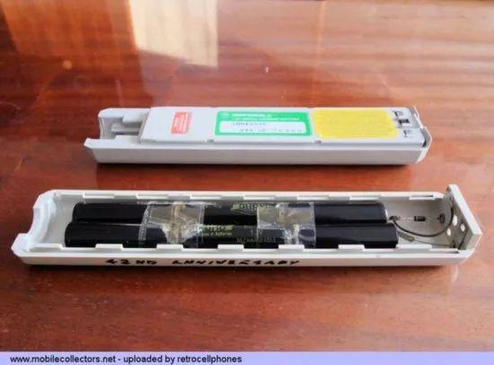 從上圖可以看出,DynaTAC 8000X的電池由六枚圓柱形鎳鎘電池組成,其輸出電壓為7.5V,相比如今3.8V的電池電壓來說,功耗要高出不少。