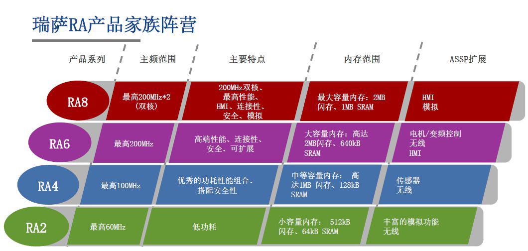 其實,RA系列今年10月份剛剛亮相發(fā)布。瑞薩不僅有如RX 32位私有內(nèi)核,也有基于Arm內(nèi)核產(chǎn)品如Renesas SynergyTM,為什么還要再造一個RA?