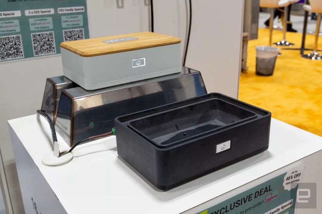 此款便當盒可以幫助你解決熱飯難題,配備18000毫安的內部電池。僅需在使用前加一點點水,并進行簡單的操作,之后再給便當盒充滿電即可。你可以通過前面的一個按鈕或配套的應用程序激活該設備,或調整默認的加熱時間(8分鐘)。
