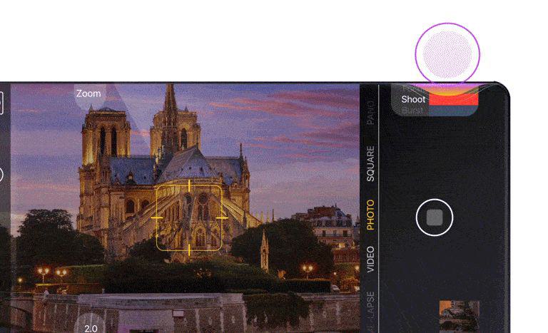 該傳感器不僅可以檢測到用戶何時擠壓,還可以追蹤壓力路線。這意味著用戶可以通過在手機邊緣滑動手指來瀏覽視頻,而不必觸摸屏幕。或者,它可以用作虛擬的三段式快門按鈕,根據用戶按下的力度來對焦,進行拍攝或連拍。傳感器甚至可以消除音量按鈕,使用虛擬按鈕。而且它甚至可以戴著手套或隔著口袋使用。