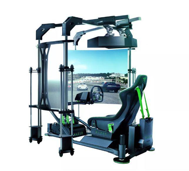 據雷蛇描述:“中心核心位于一個運動平臺上,該運動平臺由兩個執(zhí)行器和一個游戲控制箱提供動力,用于專業(yè)的賽車訓練設置,可將地形表面,重力和聲音映射為運動?!?同時,128英寸的弧形投影屏幕可提供202度的視野,并且在行駛時,單獨的馬達會收縮賽車安全帶,從而模擬了在急轉彎時的重力。