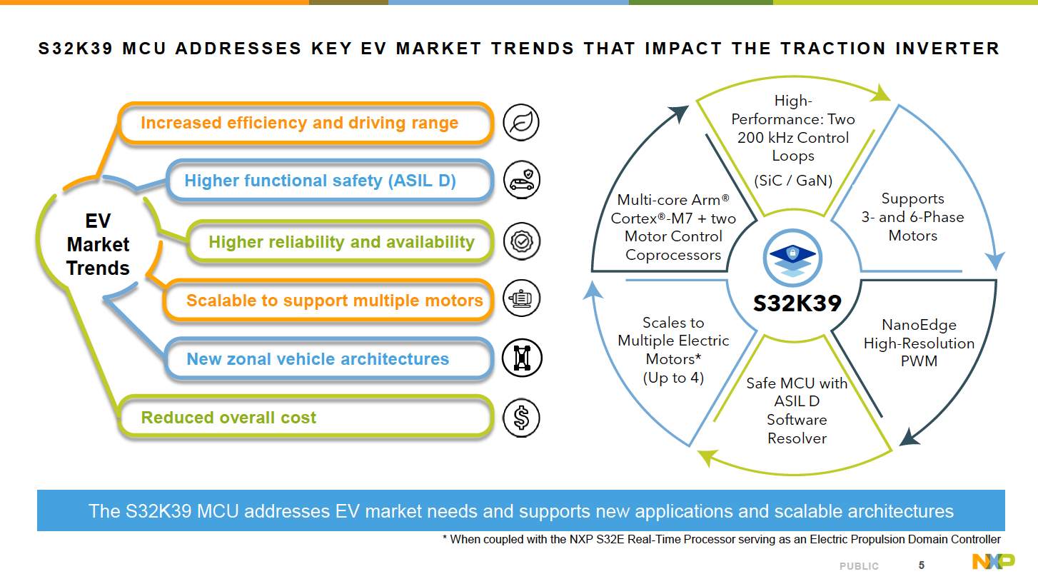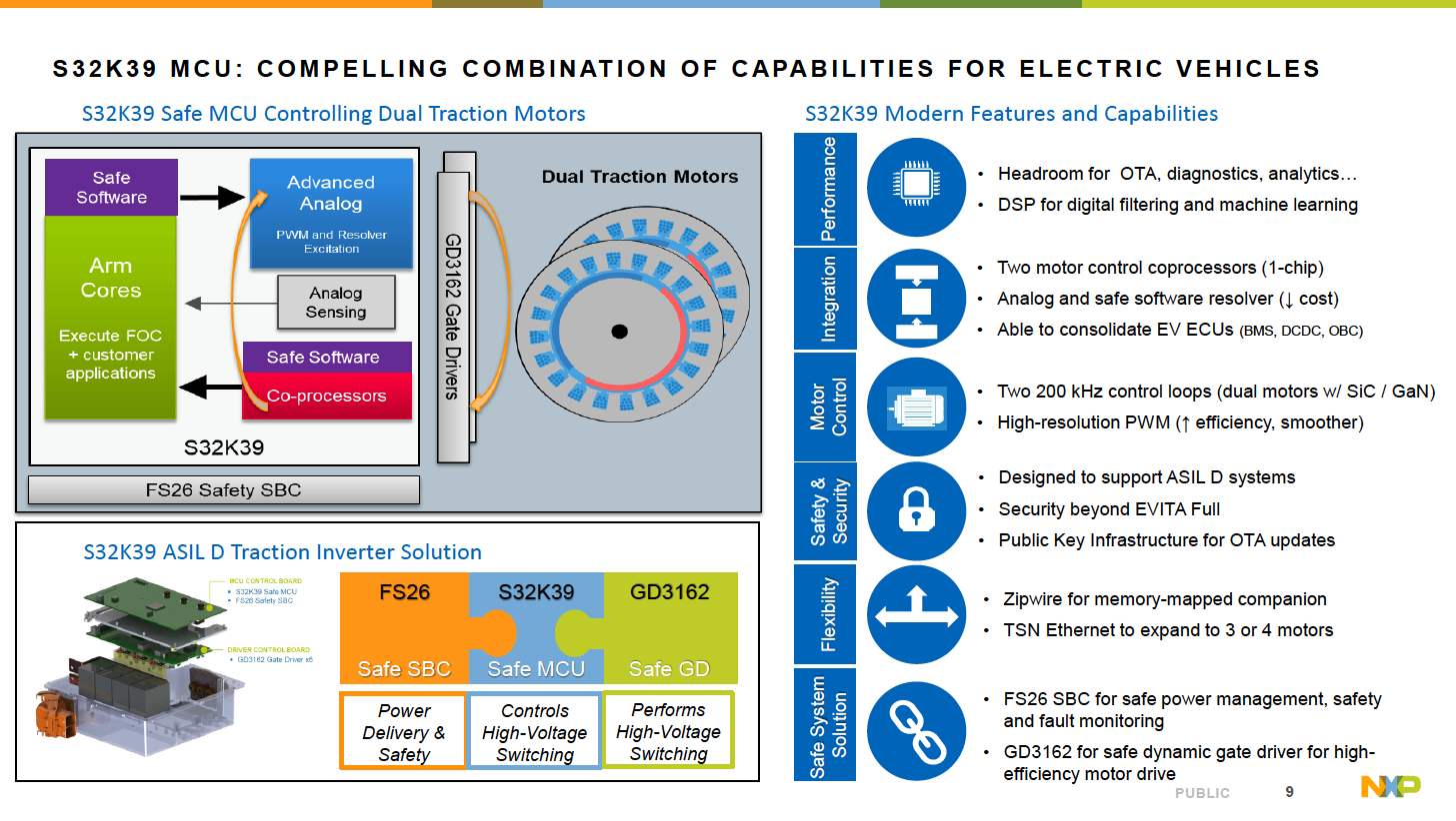 為了滿足當(dāng)下和未來的主驅(qū)逆變器的設(shè)計(jì)要求,NXP在近日的慕尼黑電子展上推出了最新的S32K39系列MCU。S32K系列推出已有一年多的時(shí)間,原先是針對(duì)一些通用型的電機(jī)控制,但最新的K39系列則是更多針對(duì)牽引電機(jī)的控制。