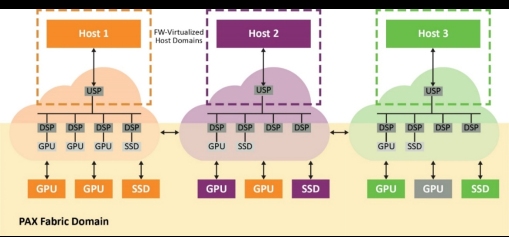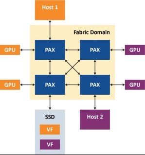 高性能PCIe結(jié)構(gòu)交換網(wǎng)(例如Microchip的PAX)允許多主機(jī)共享支持單根I/O虛擬化(SR-IOV)的驅(qū)動(dòng)器,以及動(dòng)態(tài)劃分可在多個(gè)主機(jī)之間共享的GPU和NVMe SSD池。Microchip的PAX結(jié)構(gòu)交換網(wǎng)可以將端點(diǎn)資源動(dòng)態(tài)重新分配給需要這些資源的任何主機(jī)。