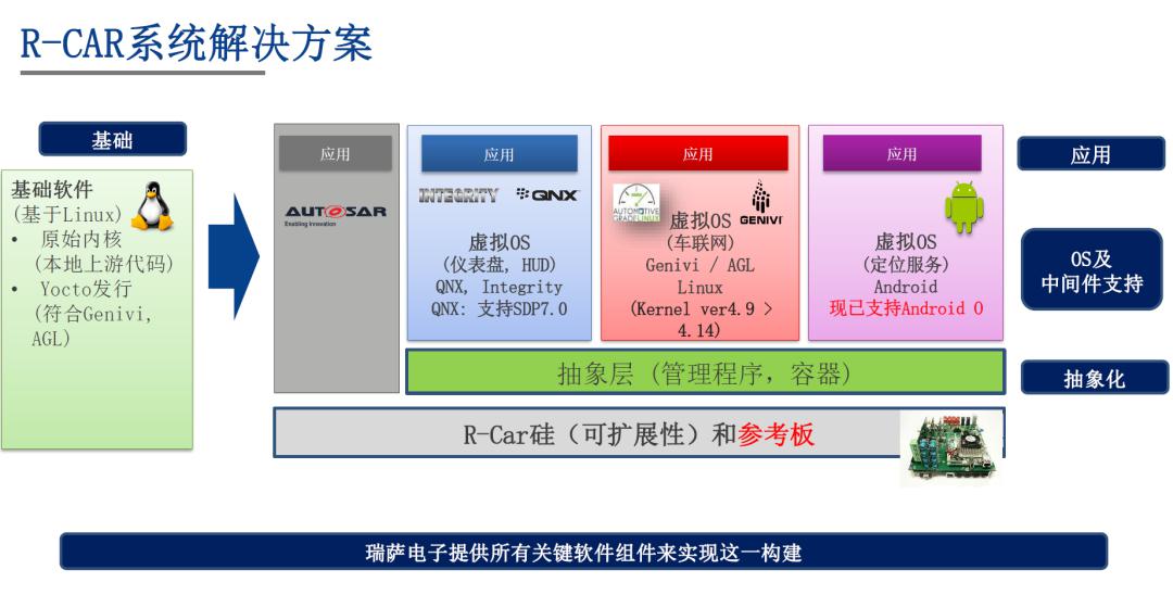 在智能座艙產(chǎn)品應(yīng)用中,瑞薩電子為車(chē)廠工程師開(kāi)發(fā)時(shí)的兼容性需求,同樣做了大量工作。瑞薩電子R-CAR系列產(chǎn)品共享相同的關(guān)鍵IP和芯片架構(gòu),所有R-CAR家族的產(chǎn)品都可以實(shí)現(xiàn)軟件兼容,R-CAR系列通過(guò)設(shè)計(jì)方法確保兼容性,最大限度降低主機(jī)廠重復(fù)開(kāi)發(fā)的工作。