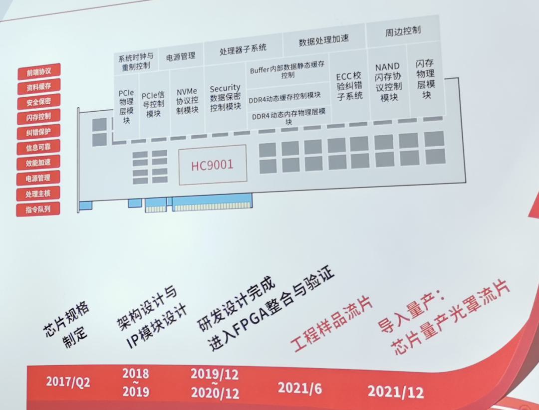 華存電子主要研發(fā)存儲控制芯片,旨在在該領(lǐng)域打破國外壟斷局面。其主控芯片HC9001為國內(nèi)首顆自主研發(fā)12nm工藝,預(yù)計將于2021年底導(dǎo)入量產(chǎn)。PCle Gen5 高端SSD為首顆國產(chǎn)國研國造的固態(tài)硬盤主控芯片,技術(shù)對標英特爾。