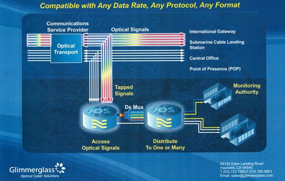 美國(guó)加州的Glimmerglass公司就是一家以銷(xiāo)售光纖監(jiān)聽(tīng)解決方案而知名的企業(yè),其客戶(hù)主要是政府的情報(bào)機(jī)構(gòu),在其2011年的一份公開(kāi)資料中,該公司稱(chēng)其方案具備監(jiān)視Gmail和Facebook所有功能的能力。
