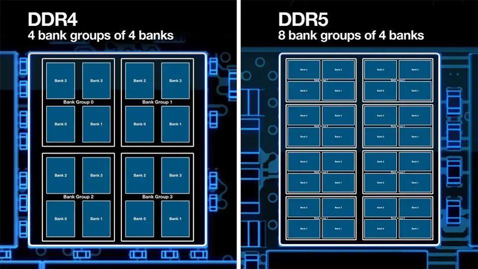 此外,DDR5不會(huì)為每個(gè)DIMM提供一個(gè)64位的數(shù)據(jù)通道,取而代之的是為每個(gè)DIMM提供兩個(gè)獨(dú)立的32位數(shù)據(jù)通道。同時(shí),每個(gè)通道的突發(fā)長(zhǎng)度(burst length)從8字節(jié)增加至16字節(jié),即每個(gè)通道每次操作將交付64字節(jié)。相較于DDR4,DDR5的有效帶寬增加了一倍。