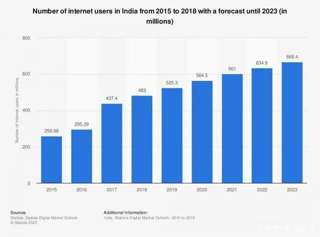 數(shù)據(jù)顯示,截止至2020年3月末,印度移動互聯(lián)網(wǎng)活躍用戶達(dá)5.6億人,有大半印度居民沒有上過網(wǎng)。在這5.6億用戶中,又有3.5億人使用的2G網(wǎng)絡(luò),用上了3G或4G網(wǎng)絡(luò)的用戶只有2.1億。