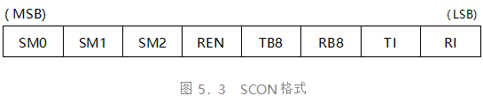 SCON 用于控制和監(jiān)視串行口的工作狀態(tài) 。其字節(jié)地址為 98H ,位地址為 98H ~ 9FH ,各位定義見圖 5.3 。