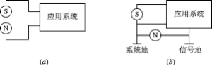 共模干擾又稱共態(tài)干擾、縱向干擾。這種干擾出現(xiàn)在輸入信號端和系統(tǒng)本體接地之間,如圖 9.2(b) 所示,主要是由于兩者接地之間存在干擾電壓引起的。這種干擾主要來源于 50 Hz 交流電源的接地系統(tǒng)在大地的電位分布,以及某些電氣設(shè)備通過接地系統(tǒng)的電流所引起的。