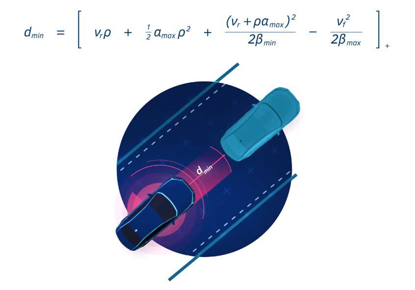 RSS試圖通過定義構(gòu)成危險(xiǎn)情況的原因以及如何做出響應(yīng)的方式,使機(jī)器可以解釋那些人為的假設(shè)和“隱式”交通規(guī)則。比如用數(shù)學(xué)公式為機(jī)器定義安全距離是多少,謹(jǐn)慎駕駛意味著什么。