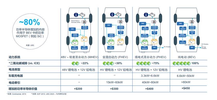 而對(duì)于電動(dòng)汽車來(lái)說(shuō),整個(gè)動(dòng)力系統(tǒng)及成本都在發(fā)生變化。功率半導(dǎo)體器件的成本將從200美金增加至450美金,這當(dāng)中80%的是碳化硅、氮化鎵等功率MOSFET的成本。