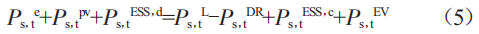 式中:Ps,tpv和Ps,tL分別為1時段光伏貢獻和負荷值:Ps,tEV為1時刻電動汽車充電樁的充電功率。