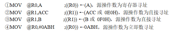 【例3-21】以@Ri為目的操作數(shù)的MOV指令。指令如下: