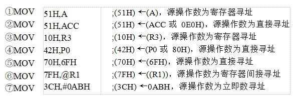 1)片內(nèi)RAM區(qū)和特殊功能寄存器的數(shù)據(jù)傳送,包括MOV指令、堆棧操作指令(PUSH、POP)和交換指令(SWAP、XCH和XCHD)。