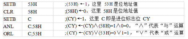 見表3-8,位“與”ANL及“或”O(jiān)RL指令的邏輯運算在兩個位操作數(shù)之間進行,而且目的操作一定是進位標志位CY。