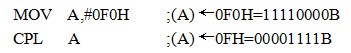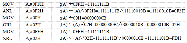 字節(jié)清零指令“CLR A”將累加器A清0。字節(jié)取反指令“CPL A”將累加器A中的數(shù)按位二進制取反。