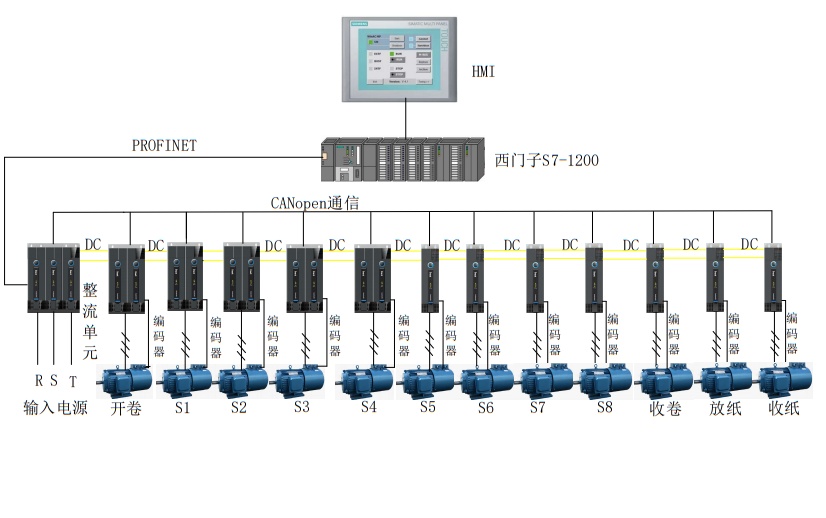 根據(jù)客戶需求,英威騰決定保留原PLC和觸摸屏程序保留了原來老的操作方式,采用PN通信進行讀寫和數(shù)據(jù)交換,節(jié)省了編程時間和工人操作培訓(xùn)成本,在GD600整流和GD800上各安裝一塊PN通信模塊,其中GD600整流和逆變單元之間采用自帶的標(biāo)配CANopen通信以節(jié)省通信模塊的費用,依托于以下幾點產(chǎn)品優(yōu)勢,實現(xiàn)完美的國產(chǎn)化改造。
