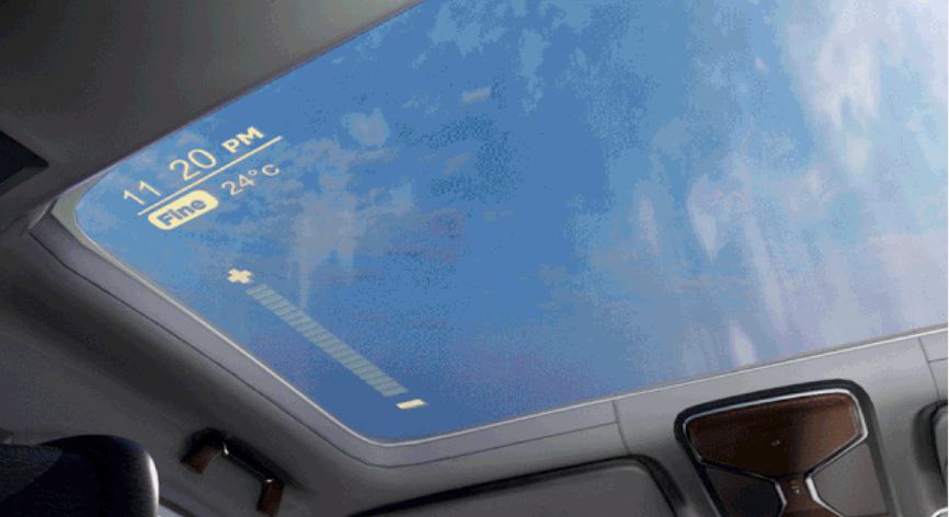 京東方的智能調(diào)光窗方案可根據(jù)環(huán)境亮暗連續(xù)調(diào)節(jié),讓車窗秒變隱私玻璃。它是在電壓驅(qū)動下控制染料分子旋轉(zhuǎn)來改變透過率。與其他調(diào)光方案相比,該方案具有高通透、低功耗、快速響應(yīng)的特點,適用于乘用車天窗、側(cè)窗場景。側(cè)調(diào)光窗支集成BOE透明顯示技術(shù),可實現(xiàn)人車交互。