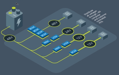 此外,Vicor 提供的設(shè)計(jì)支持,還在系統(tǒng)中為每個(gè)組件實(shí)現(xiàn)了輸出可控的特性,并通過(guò)監(jiān)控所有Kodiak傳感器的電壓及電流優(yōu)化了組件的健康狀況。Kodiak平臺(tái)包含四條基本母線,必須指向特定的傳感器、執(zhí)行器和處理器。每組輸出均可通過(guò)專(zhuān)用 CAN 母線監(jiān)控并進(jìn)行單獨(dú)控制。