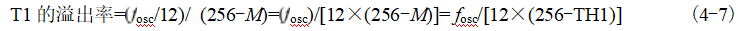 在表4-12出現(xiàn)了“T1溢出率”,下面將介紹表4-12中“T1溢出率”的計(jì)算方法,以及在串口方式1和方式2下,如何利用“T1溢出率”計(jì)算串口通信的波特率。
