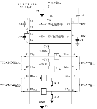 圖4-27 MAX232的引腳和內(nèi)部邏輯功能