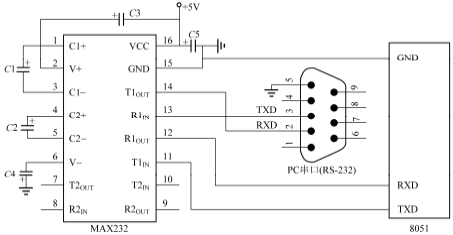 圖4-28單片機(jī)串口與PC串口的電路連接