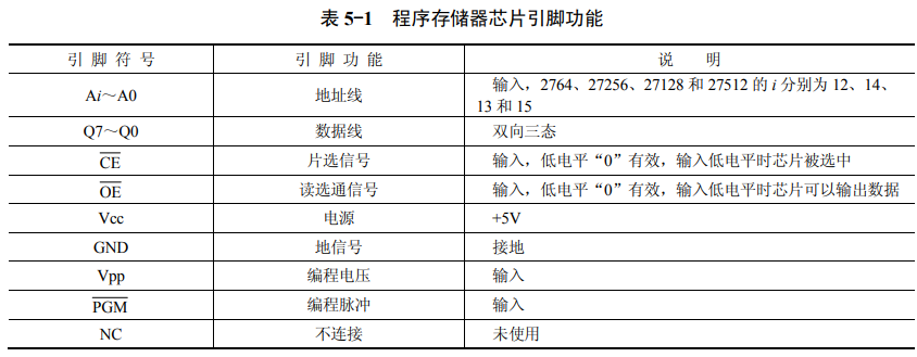 圖5-3常用程序存儲(chǔ)器芯片引腳圖