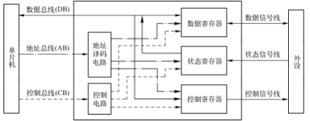 I/O 接口的典型結(jié)構(gòu)如圖 5-14 所示,其內(nèi)部有三類寄存器,即: