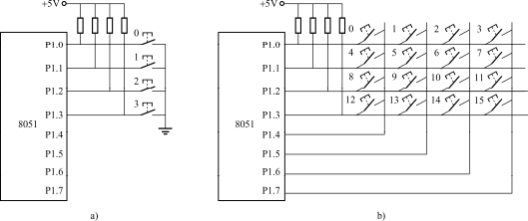 a)獨立式鍵盤的結(jié)構(gòu)b)矩陣式鍵盤的結(jié)構(gòu)