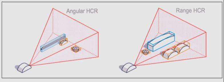 傳統(tǒng)上,在任何測量維度(距離、速度和角度),上述分辨率的雷達性能都是基于目標(biāo)相同反射率或雷達散射截面(RCS)。然而,在汽車應(yīng)用中,這個定義雖然非常重要,但還不夠。在這種應(yīng)用中,雷達分辨距離大目標(biāo)很近的小目標(biāo)的能力也很重要,特別是其距離(如卡車前面的小孩)和角度(如護欄旁的行人)。因此,新方法引入了一種稱為“高對比度分辨率(HCR)”的概念,這對于確定雷達在駕駛中支持高水平自動化的程度至關(guān)重要。HCR代表雷達的接近程度,可以解析兩個目標(biāo)的RCS在任何測量維度上的給定差異。