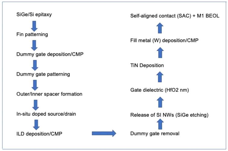 在制造方面,納米片F(xiàn)ET的工藝流程包括: