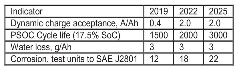 汽車啟/停和微混動力電池關鍵性能指標及中期目標
