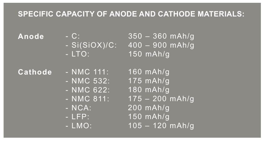 鋰離子技術包括的負極和正極材料組合