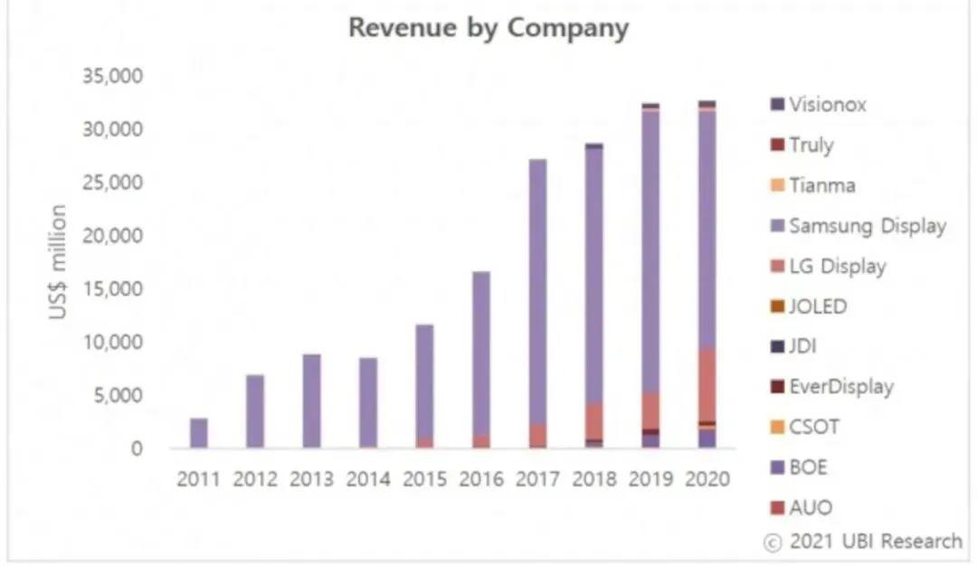 3月11日消息,市場研究機構(gòu) UBI Research 近日發(fā)布報告,表示 2020 年全球 OLED 面板出貨量為 5.7788 億塊,同比增長 3.7%。由于受到 2020 年面板平均價格下降的影響,全年 OLED 面板總收入僅增長 0.7%,為 326.8 億美元。