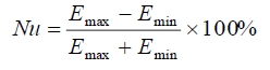 太陽(yáng)能模擬器輻照度穩(wěn)定度是指在測(cè)試平面上的指定區(qū)域內(nèi)的輻照度值的穩(wěn)定程度,一般用輻照度不穩(wěn)定度來評(píng)價(jià)。在測(cè)試平面上的指定區(qū)域內(nèi)任取一坐標(biāo),記錄該點(diǎn)的輻照度值在一定時(shí)間內(nèi)的變化情況,在測(cè)試時(shí)間內(nèi)測(cè)取的輻照度最大值記作E'max,輻照度最小值記作E'min,太陽(yáng)能模擬器輻照度不穩(wěn)度的計(jì)算公式如下: