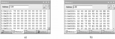 a)片內(nèi)數(shù)據(jù)存儲器內(nèi)容顯示b)程序存儲器內(nèi)容顯示