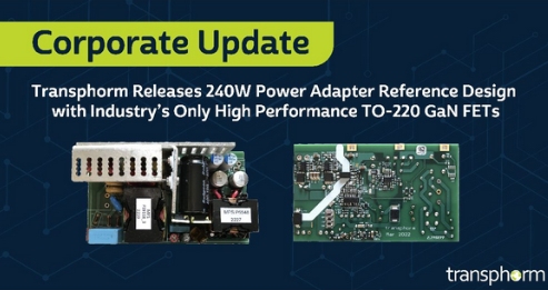 Transphorm發(fā)布緊湊型240瓦電源適配器參考設(shè)計,該方案采用了高性能TO-220封裝氮化鎵功率管