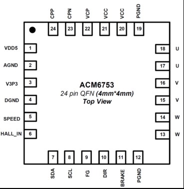 ACM6753 無霍爾傳感器三相正弦波控制直流無刷電機BLDC馬達驅(qū)動IC解決方案