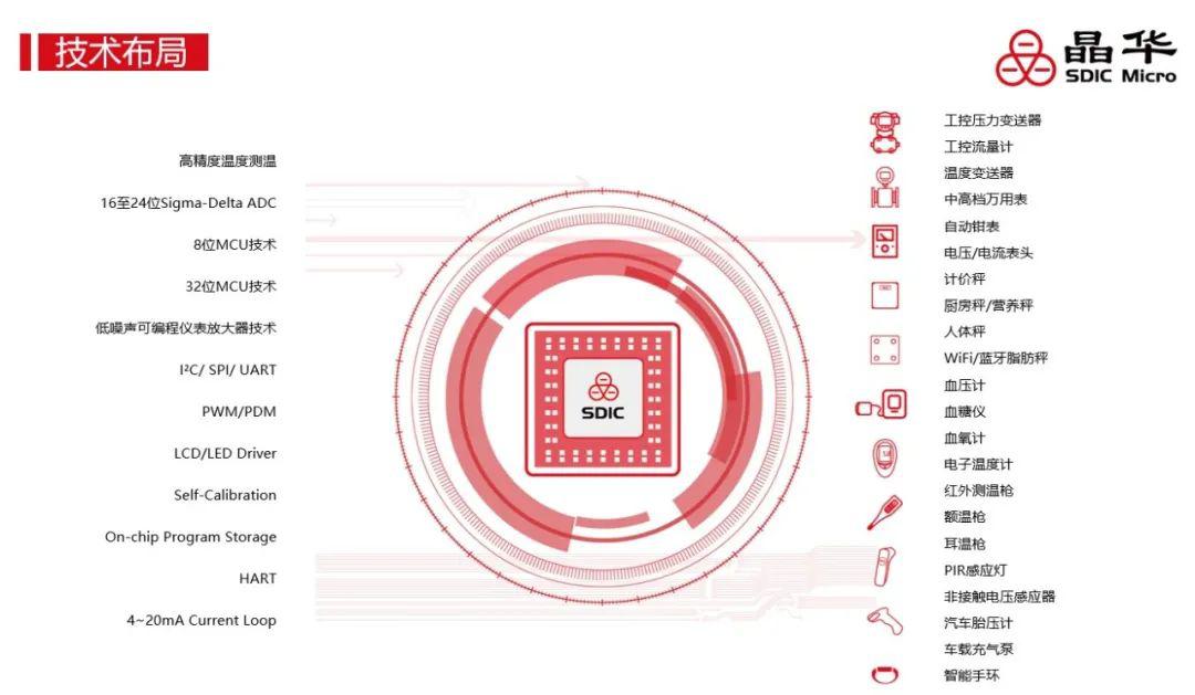 晶華微電子產(chǎn)品被廣泛應(yīng)用在醫(yī)療健康、壓力測(cè)量、工業(yè)控制、儀器儀表、智能家居等眾多領(lǐng)域。其中,高精度低功耗的24Bits ADC+8Bits MCU類SoC年出貨量達(dá)上億顆,紅外測(cè)溫芯片和電子秤市場(chǎng)占有率接近50%,工業(yè)控制和萬(wàn)用表芯片市占率超過(guò)30%。李建表示,晶華微技術(shù)團(tuán)隊(duì)由國(guó)內(nèi)外資深人士組成,對(duì)于數(shù)字與模擬芯片的研發(fā)、生產(chǎn)制造、良率品控嚴(yán)格把控,是芯片廠商本土化的優(yōu)秀代表。